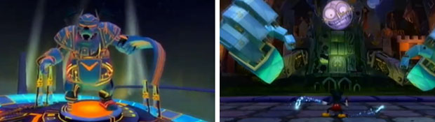 I challenge the harshest critics to review Epic Mickey on the gameplay elements rather than fanservice preconceptions. Rating down the game because Mickey was not in a particular costume did nothing to point out the actual failings of the game. Complaints about a certain detail from a concept piece did not make the character relevant. It did not answer the challenge laid out to Warren Spector and Junction Point. Mickey had to be presented as a personable character with a sincere story yet wrapped into an original gameplay experience. The best games after all should be played and not watched. Epic Mickey was a title that required intense audience participation. Unless a costume change was relevant to gameplay then it wouldn’t be in the game. The mouse did not change costumes or identities in Epic Mickey. He did not don a Tron, Pirate or Ghost costume in any portion of the title, yet that was not to say that those elements crucial to the Disney name were not featured. Epic Mickey presented fantastic battles in familiar, yet distorted locations, with nods to the park and film legacies.
