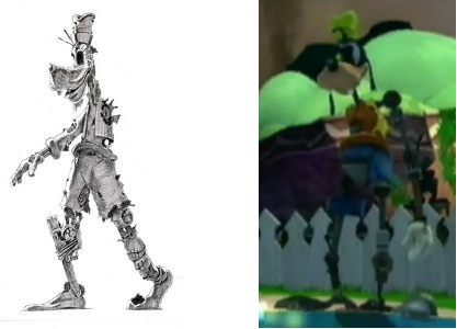 Other concept pieces showed macabre, mechanical versions of Mickey's friends. These disjointed and unfinished "animatronics" did make their way into the game. Goofy, for example, did only have one arm and was missing his large cartoon eyes, only a small green camera served as his vision. Did critics bring attention to these odd creatures? Did they acknowledge that the concept art and finished pieces were not far from each other? Or that Junction Point managed to capture the essence of the actual character even with unfinished robotics? How mickey interacted with the characters and helped solve their problems shaped the direction of the story.