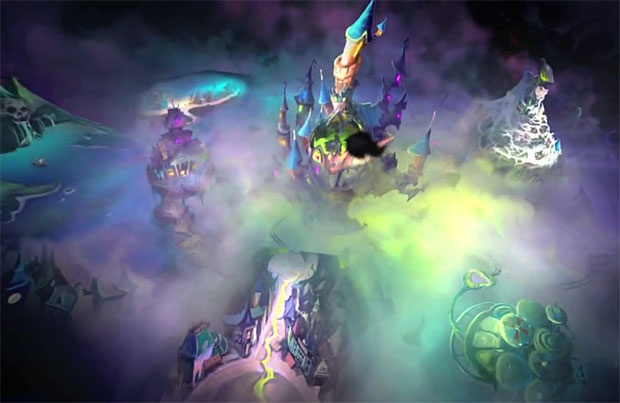 Many of these twisted landmarks did not solely exist for the sake of shock value, they were given a purpose. For example, rather than place the Matterhorn Mountain in the Wasteland, Junction Point created a “Mickey Junk Mountain.” It was a mountain that was built on decades of Mickey merchandising. Just about every record, book, puzzle, toy, toiletry, figure and game that featured the mouse was crammed into the walls, floors and background of the mountain peaks. Off in the distance there were ravines hidden behind swirling toxic clouds with the occasional set of mouse ears. If one bothered to look then they would have been reminded very clearly of the concept art.