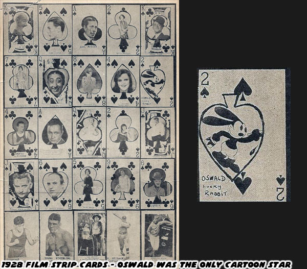 Oswald was the only cartoon character in the 1928 film strip card set. The rest were actors like Charlie Chaplin, and sports stars like heavyweight boxer Young Stribling. The Lucky Rabbit was considered as big a star back then too. Unfortunately his fame would be surpassed by Mickey Mouse later that year. It would be the first, and last time that Oswald got the film strip card treatment. Little did he know that the card would end up with me 80+ years later.