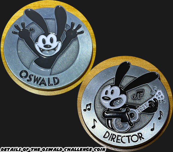 You could see on one side of the coin that Oswald was playing a guitar. The neck of the guitar had 2025 printed on it, and the music notes actually spelled out “JF” for the director. I begged every Disney friend that I knew to see if they could score a coin for me. Many visited the parks at least once a week, the odds that they might stumble across the shoot were pretty good. As an Oswald super fan I also begged Favreau online yet never got a response. I’m sure he was getting millions of comments for every Marvel, Star Wars, and now cartoon project that he was associated with. Chances were that he would never see my posts. Still I held out hope!