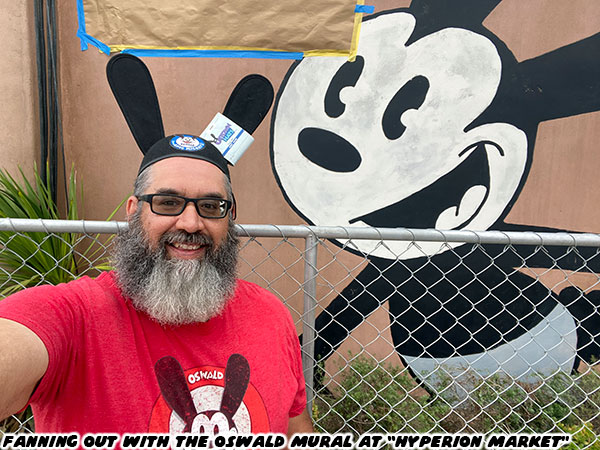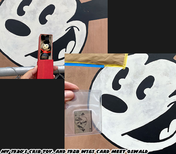 I know for a fact that Oswald’s luck brought him back home. The mural may have been freshly painted, however it was a way for me to reconnect with his past. Every time a new project was announced I made it a personal mission to get a timestamp. I needed a visual record of my oldest Oswald toy to go along with the good news. I did this at the Disney Interactive booth at the LA Convention Center in 2010 for the Epic Mickey premier at the E3. I did it again in 2015 at the Ace Hotel Theater when the LA Chamber Orchestra performed an original piece for the restored Proud Papa short. In 2025 I was still keeping the tradition alive. It may sound silly but I wanted Oswald to know that he would never be forgotten.