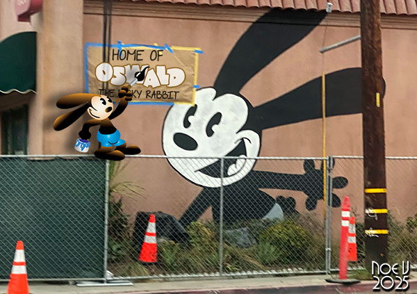 The best part of being an illustrator is being able to add missing details to a picture. I was bummed out that I couldn’t get a clear picture of the full Oswald mural that I mentioned in the previous blog. I also didn’t understand why the part that read “The Home of Oswald the Lucky Rabbit” was covered in butcher paper. Hopefully the next time I get out to Culver City I might be able to get an unobstructed view of the painting. To hold me over I recreated a classic illustration of Oswald with a bucket of paint, and paintbrush filling in the part that I didn’t get to see.